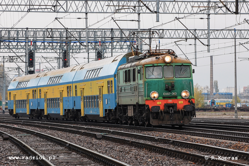Deszczowe popołudnie w stolicy Wielkopolski. Kończąc dzień pracy w Zakładzie Taboru w Poznaniu pozostałem jeszcze na chwilę przy torach, żeby poprzyglądać się planowemu ruchowi w węźle. Sfotografowałem wówczas jeden ze zwyczajnych wówczas pociągów osobowych złożony z trzech wagonów Bdhpumn i lokomotywy EU07. Moją uwagę zwróciła oczywiście maszyna prowadząca skład. była to lokomotywa typu 303E nienaruszona jakimikolwiek ulepszeniami – oryginalne pneumatyczne wycieraczki i tradycyjne grzałki szyb. No i oczywiście klasyczne reflektory.
