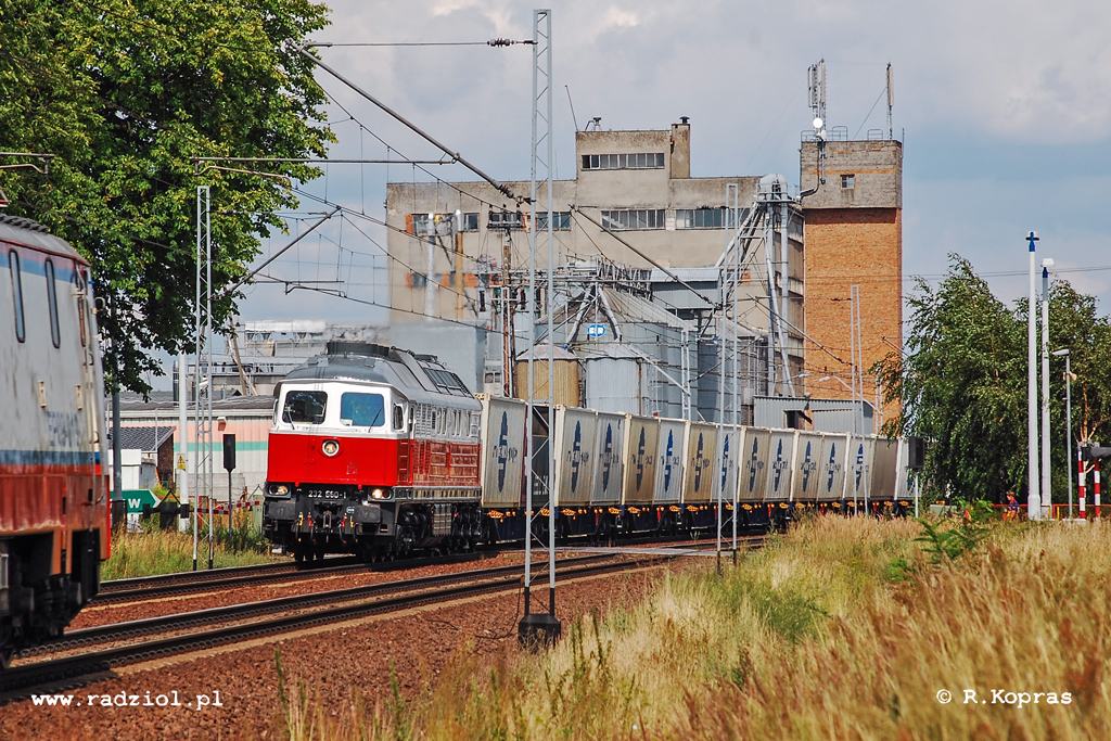 W 2007 roku na magistrali E20 pomiędzy Poznaniem i Zbąszynkiem regularnie widywałem pociąg kontenerowy uruchamiany przez East-West Railways. Było to konsorcjum powołane do życia w czerwcu 2007 roku przez DB Railion i PCC Kolchem. Niemcy wnieśli do spółki tabor – lokomotywy serii 232 przystosowane do pracy w Polsce, natomiast PCC zajęło się organizacją przewozów po polskiej stronie. Dwie pary pociągów w tygodniu kursowały przez Poznań, Zbąszynek, Czerwieńsk do Gubina i dalej do Niemiec. Charakterystyczne barwy lokomotyw utrzymały się na niektórych egzemplarzach do dzisiaj. Sama spółka EWR została ostatecznie zamknięta w 2011 roku, choć prowadzone przez nią przewozy już wcześniej wchłonął DB Schenker Rail Polska. Widoczna na zdjęciu „Ludmiła” została ostatecznie sprzedana do Polski. Po naprawie głównej przeprowadzonej przez PROTOR dziś możemy ją spotkać z pociągami prywatnych przewoźników. W 2017 roku maszyna pracowała dla ECCO Rail – jej zdjęcie możecie zobaczyć TUTAJ.