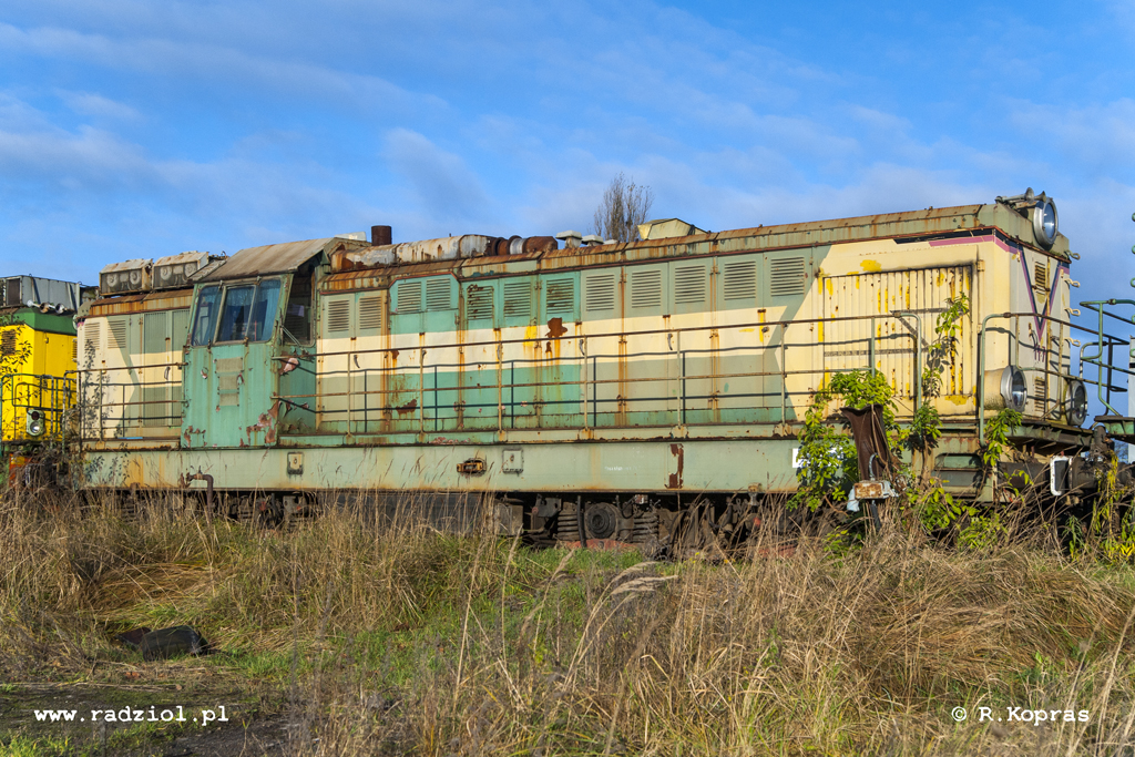 Kolejne zdjęcia doskonale ukazują postępującą degradację odstawionego pojazdu. Tabliczki już dawno zniknęły, jednak dwukolorowe „V” na czole wyklejone niemiecką taśmą trzyma się doskonale. Jak widać przyklejający ją dwadzieścia lat temu maszyniści bardzo się przyłożyli do przygotowania powierzchni pod naklejki…