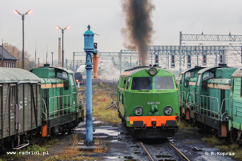 Senny poranek na terenie lokomotywowni przy stacji Poznań Główny. Z porannym pociągiem osobowym z Wolsztyna przyjechał tego dnia parowóz Ok22-31. Przed obróceniem go na obrotnicy zazwyczaj uzupełniano zapas wody w tendrze. Niestety na torze pod żurawiem tego dnia odstawiono SU45-220. Maszynista parowozu przespacerował się więc do dyspozytora i po krótkiej chwili pojawił się dyżurujący na „depo” maszynista spalinowy, by przestawić lokomotywę na inny tor. Silnik „Fiata” wkrótce ożył wydając charakterystyczny dźwięk przy starcie, po czym maszyna powoli ruszyła, zatrzymując się przed każdym rozjazdem, gdyż mechanik sukcesywnie układał sobie drogę w kierunku parowozu. Po dojeździe do niego zmienił kabinę i ustawił się na torze obok, tym samym zwalniając drogę dla Ok22. Ten po zmianie ułożenia jednego rozjazdu mógł w końcu podjechać pod żuraw wodny i rozpocząć wodowanie. Ja zaś schowałem aparat do torby i wróciłem do swojej pracy.