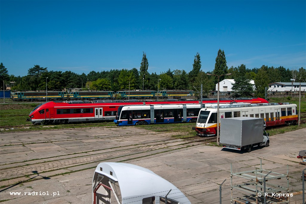 7 sierpnia 2018 |Bydgoszcz| Na pierwszym planie teren PESY Bydgoszcz. W tle teren DEPOL-u i cztery lokomotywy HLE 21 (od lewej: 2103,2128,2109,2119) Na pierwszym planie widoczny min. trójczłonowy Link dla DB Regio