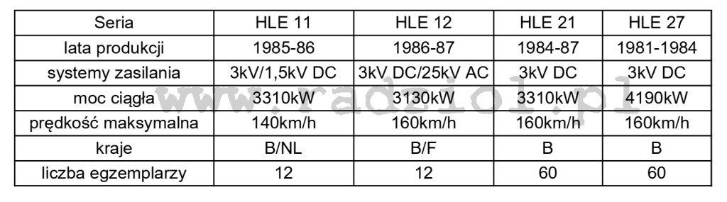 W latach 1984 – 1987 w belgijskich zakładach BN/ACEC wyprodukowano 60 egzemplarzy lokomotyw HLE 21. Była to część większej rodziny pojazdów – koleje belgijskie zamówiły łącznie 144 lokomotywy czterech serii – w dużym stopniu zunifikowane. W jednakowych pudłach opartych na dwóch wózkach dwuosiowych (zastosowano oparcie na sprężynach typu „flexicoil”) umieszczono nowoczesną aparaturę elektryczną – pojazdy miały tyrystorowy układ rozruchu, hamulec elektrodynamiczny i wszystkie mogły być zasilane z sieci trakcyjnej prądu stałego o napięciu 3kV. Dwa typy pojazdów mogły opuszczać Belgię przez granicę francuską (HLE 12 – dodatkowo 25kV AC) oraz holenderską (HLE 11 – dodatkowo 1,5kV DC). Podstawowe informacje o całej rodzinie zestawiłem w poniższej tabeli: